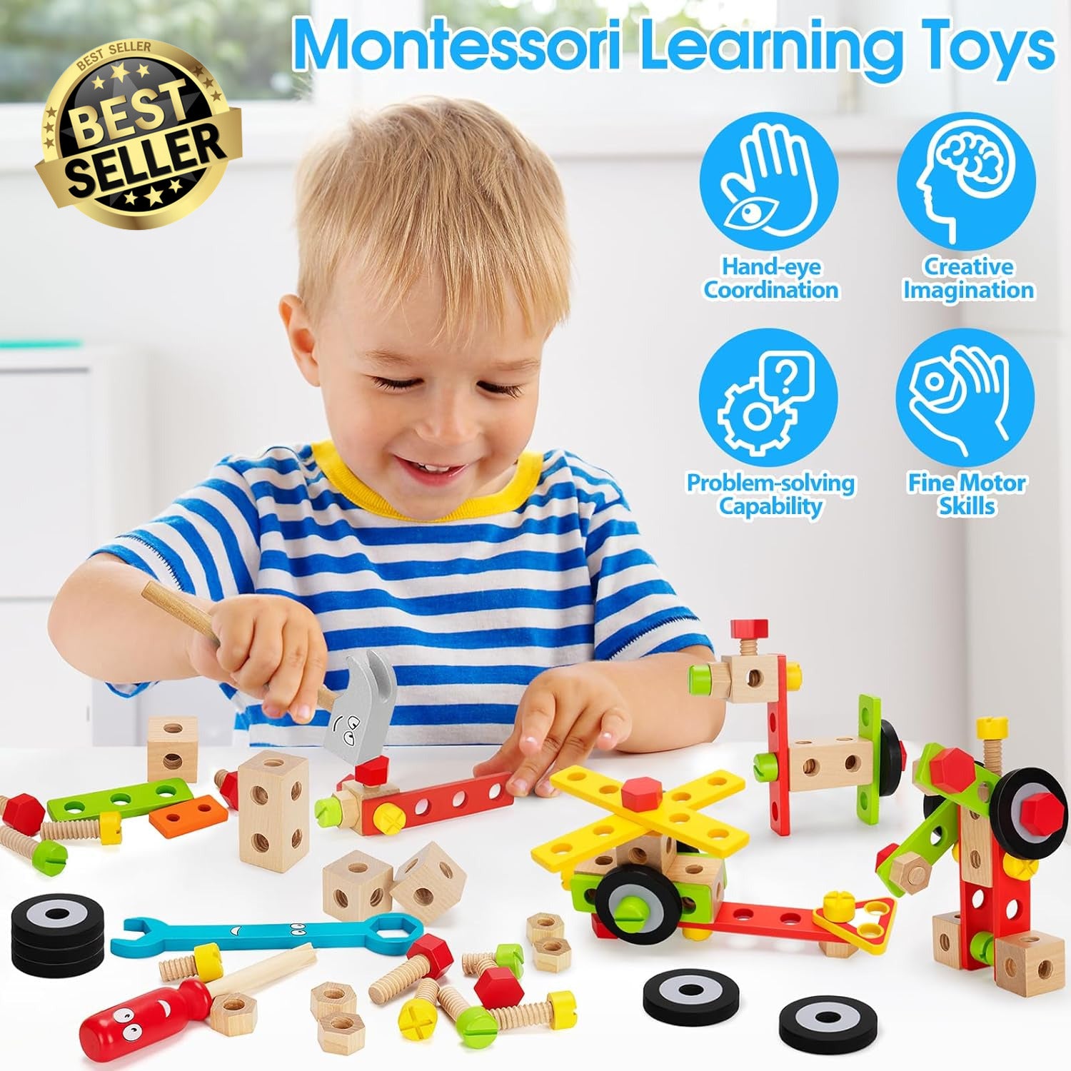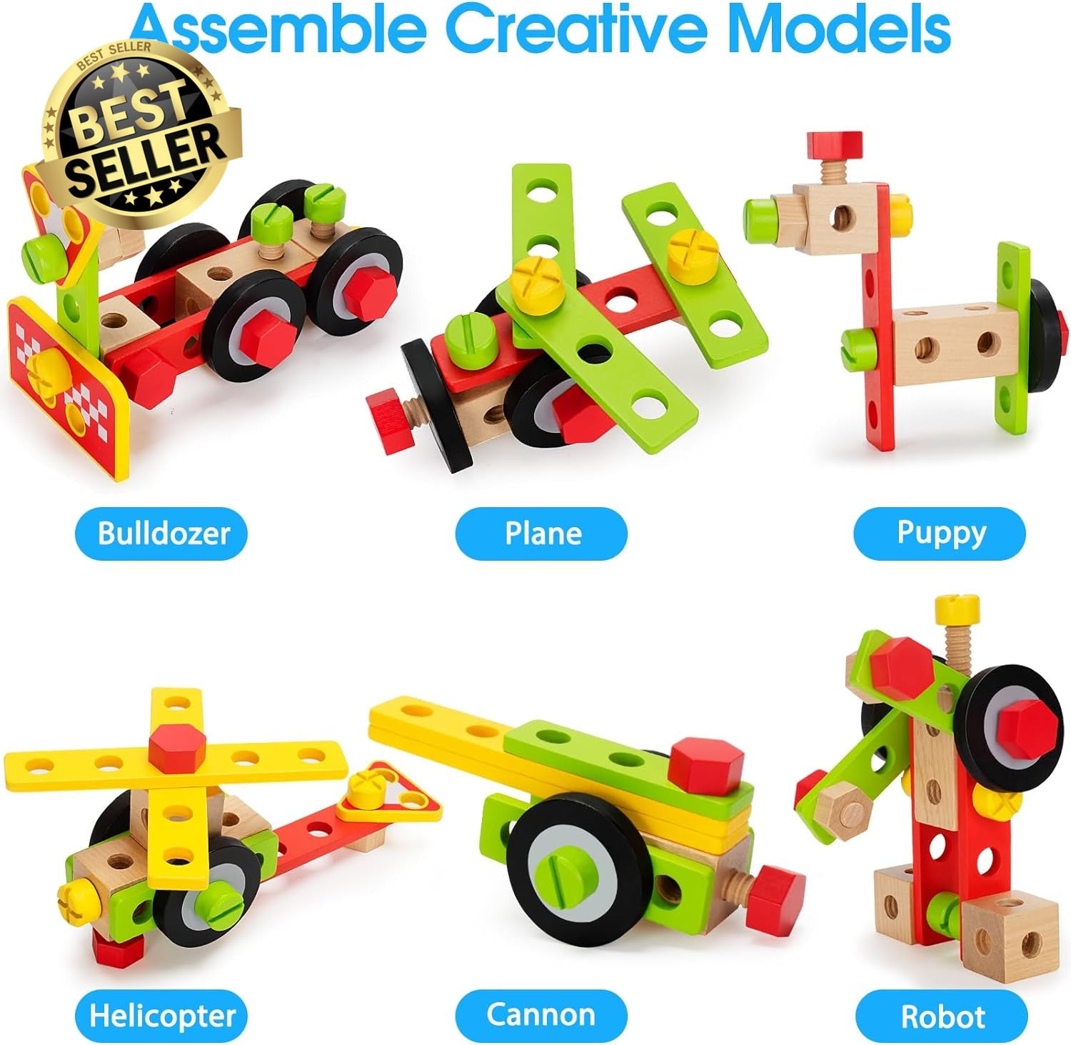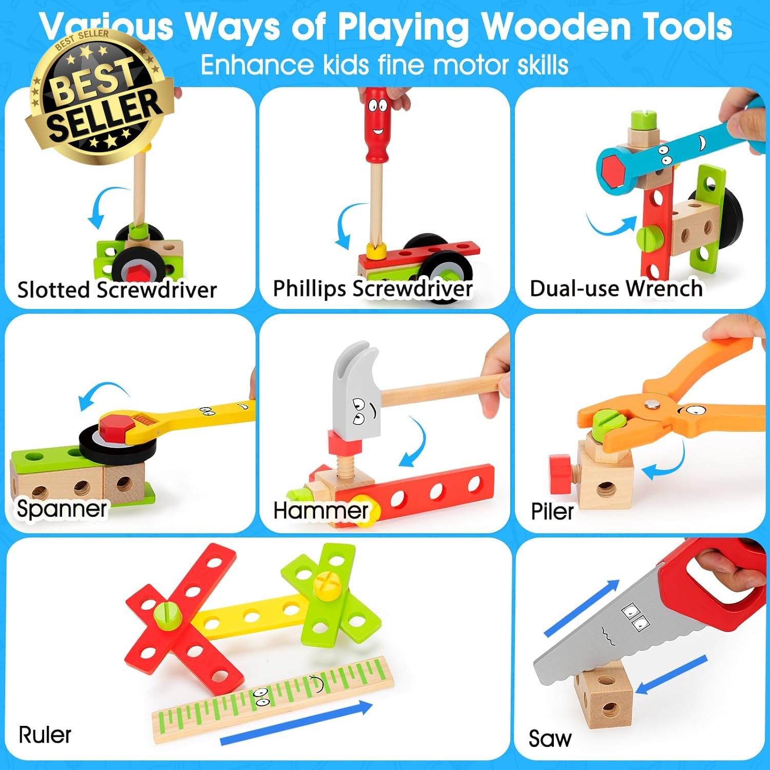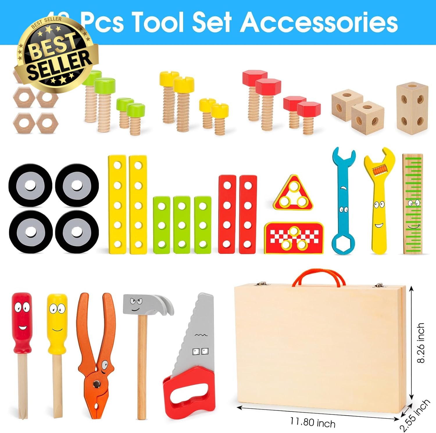 - 43-Piece Deluxe Kit: Includes a variety of wooden tools and accessories like screws, bolts, planks, and a child-sized hammer to bring their creative projects to life.