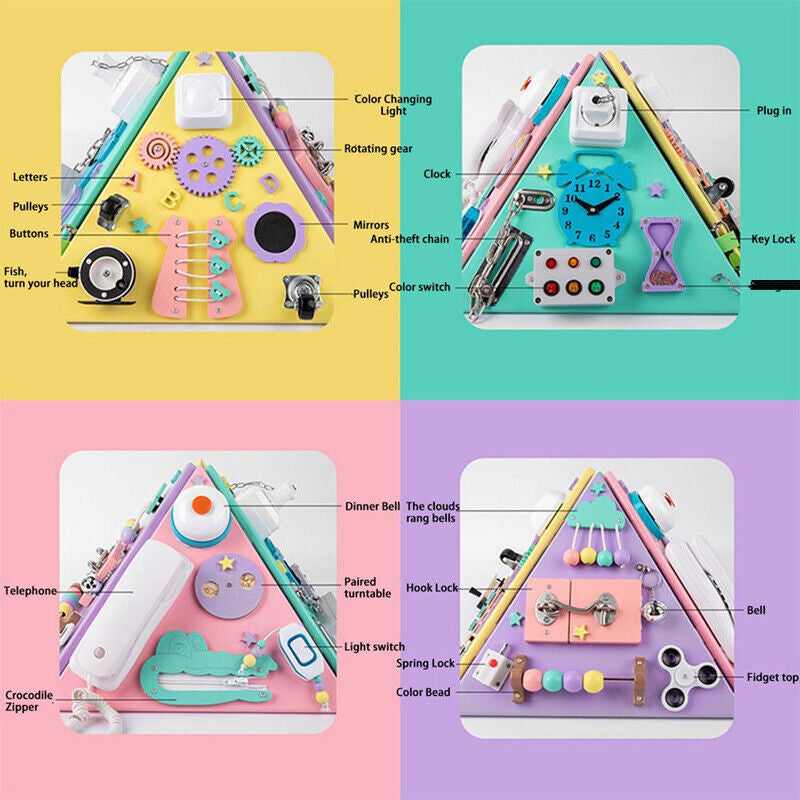 At our core is your child’s safety. The Montessori Busy Board House is built using non-toxic, child-safe materials with smooth edges to ensure secure play. It adheres to strict safety standards, making it a worry-free choice for parents.