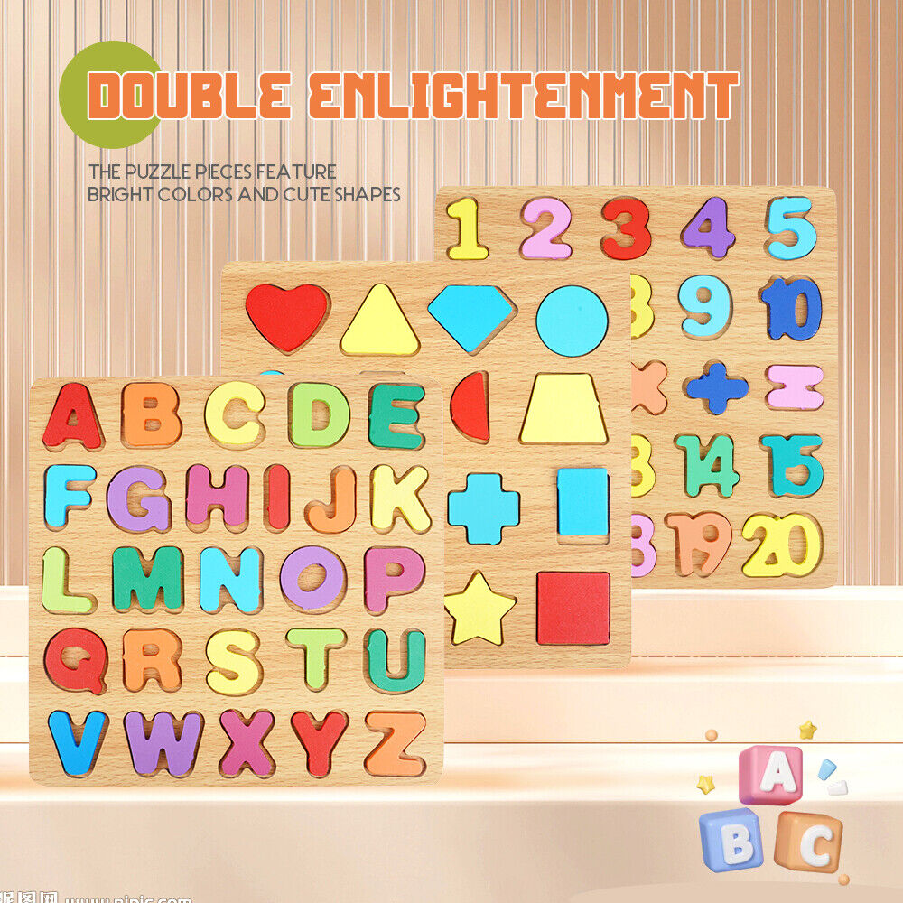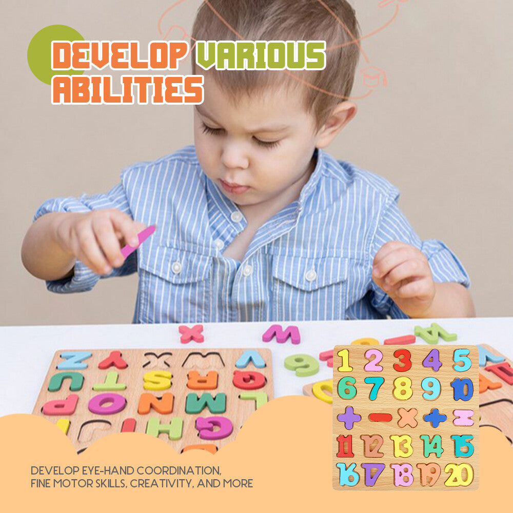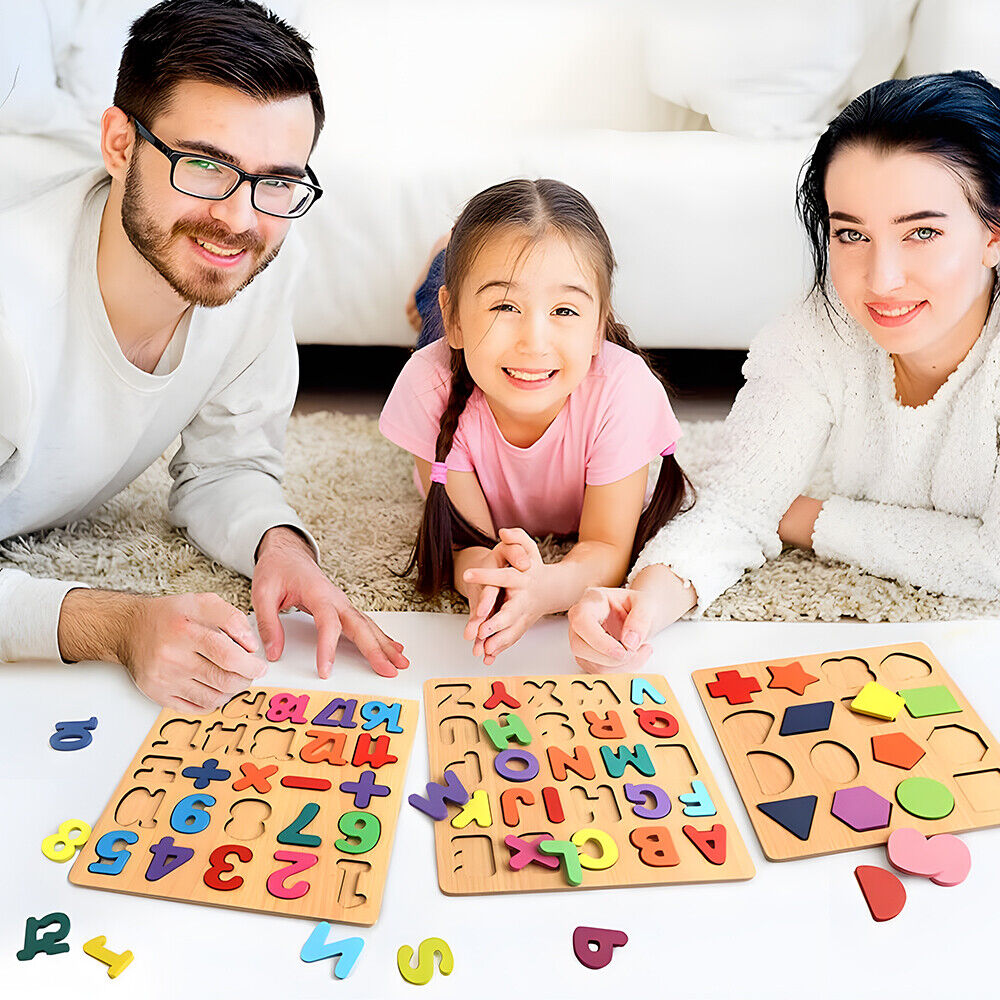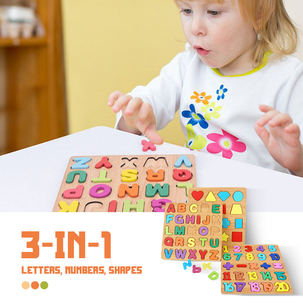 3-in-1 Wooden Educational Puzzle – ABC, Numbers & Shapes - Fun that Educates!
