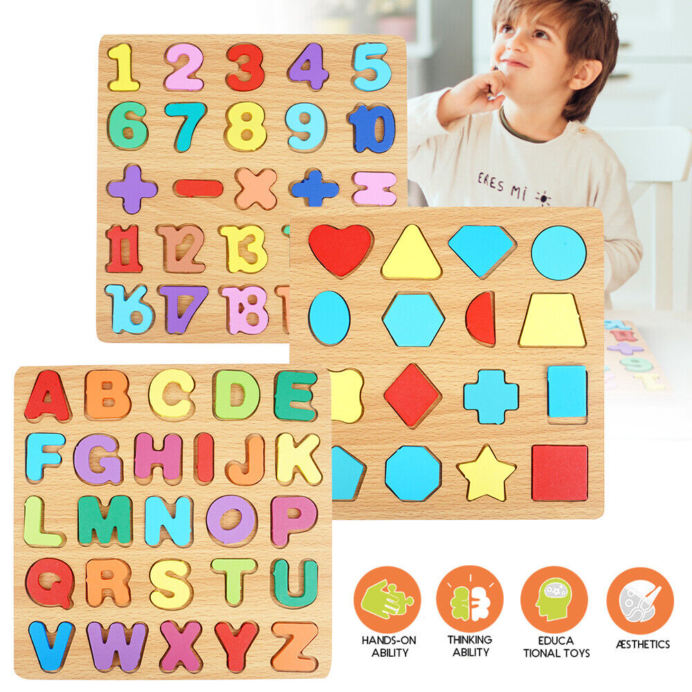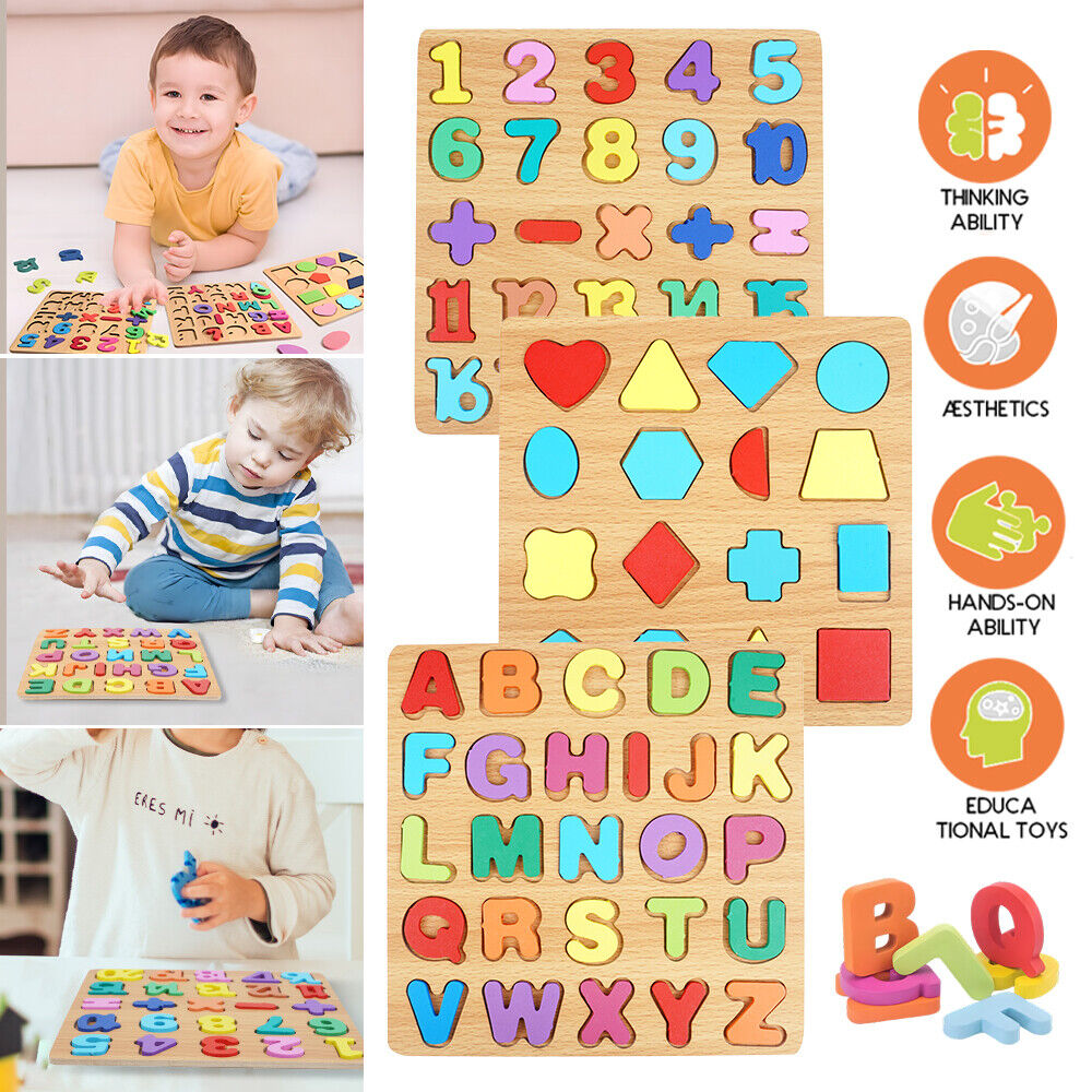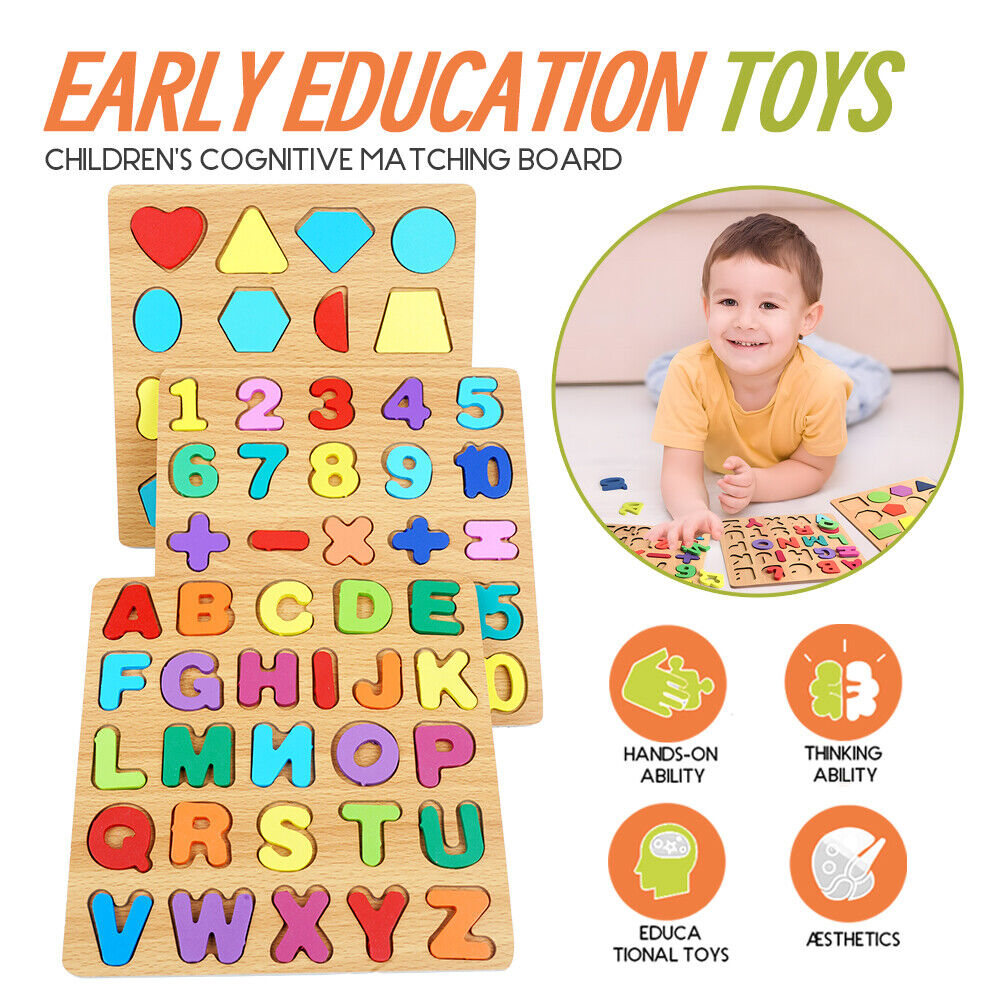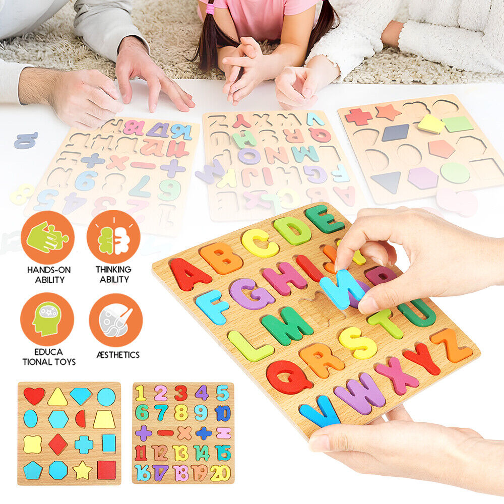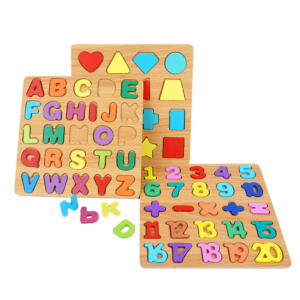 3-in-1 Wooden Educational Puzzle – ABC, Numbers & Shapes - Fun that Educates!