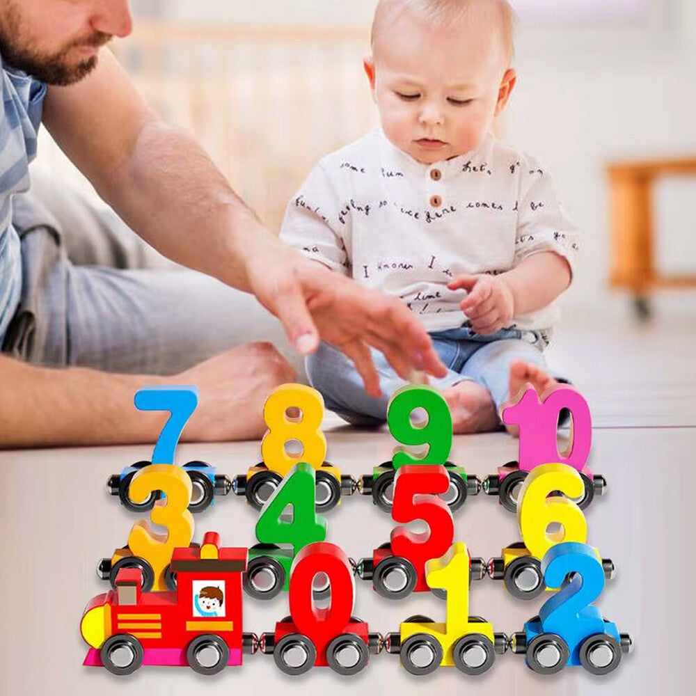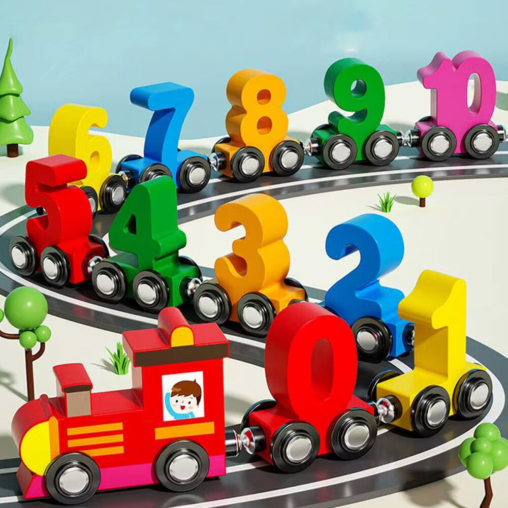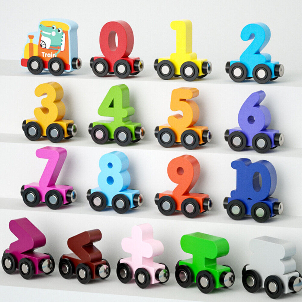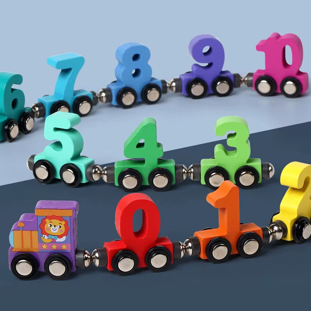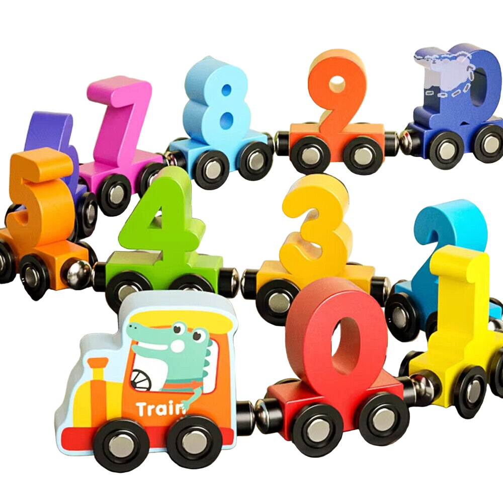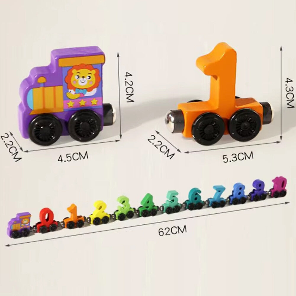 - 12-Piece Number Train: Includes 11 brightly colored number cars and 1 locomotive head, each connected with strong magnets for limitless play possibilities.